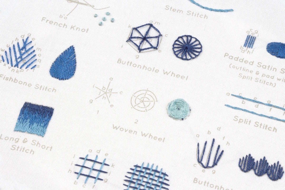 The Intermediate Embroidery Stitch Sampler is a great introduction to intermediate stitches used in Kiriki Press and other embroidery patterns.