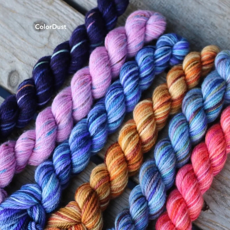 Kit includes 6 mini skeins of Koigu Jasmine DK