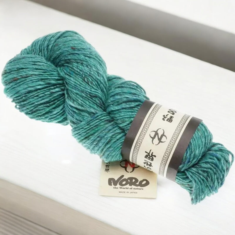 Madara is a medium to bulky weight that knits up knits up at a gauge of 15-17 stitches per four inches on US 7-8 (4.5-5.0mm) needles. Heavily twisted, it has a soft, luxurious hand thanks to the addition of silk and alpaca to a wool base. It is available in semi-solids featuring nubby flecks which provide interesting pops of contrasting color throughout this yarn (thus living up to its name - Madara means mottled in Japanese)